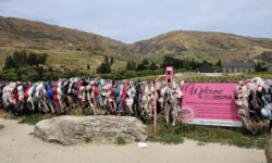 Den nächsten Stop machen wir in Wanaka. Das liegt am Lake Wanaka und im See steht ein einsamer Baum, der allerdings viel Besuch bekommt. Alle Besucher Wanakas statten diesem Baum einen Besuch ab, und er ist bestimmt das am häufigsten aufgenommene Fotomotiv in der Gegend. Vielleicht ist das aber auch der Wonderbra-Zaun auf der Straße, die weiter nach Queenstown führt. Hier hängen unglaublich viele bunte BHs und jedes Auto hält für ein paar Fotos an. Der ernste Hintergrund des Zauns ist das Sammeln von Spenden für die New Zealand Breast Cancer Foundation und natürlich darf man auch einen weiteren Bra an den Zaun hängen. Mein übriger hängt aber schon in Ronnies Sexshop in Südafrika, also fahren wir ohne BH-Spende weiter.