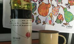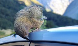 Auf dem Campingplatz und im Wald begegnen uns Wekas (das sind quasi Kiwis mit kurzem Schnabel) und auf einem Parkplatz zum Summit Walk hüpft ein Kea von Auto zu Auto. Keas sind recht anhängliche Bergpapageien, die gerne am Dichtungsgummi der Autoscheiben knabbern. Das bleibt uns zum Glück erspart. Was wäre passender als zum Abendessen frischen Fjordlachs zu braten? Dazu gibt es Rotwein: fat bird!