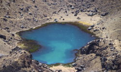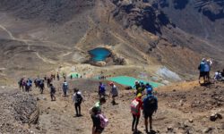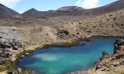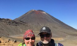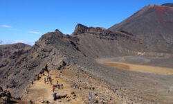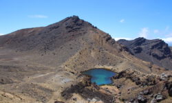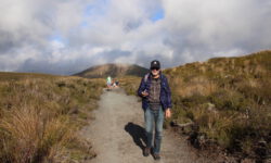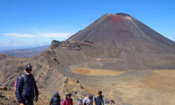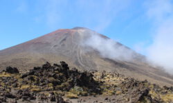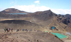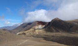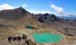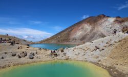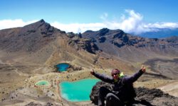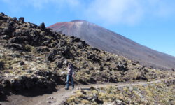 Einen Tag später haben wir uns den Tongariro Alpine Crossing vorgenommen. Das ist ein ziemlich anspruchsvoller 19,4 Kilometer langer Wanderweg entlang am aktiven Vulkan Mount Ngauruhoe, über Mount Tongariro, vorbei am roten Krater, den Emerald Lakes und dem Blue Lake, von denen einer im Sonnenlicht schöner funkelt als der andere. Der Campingplatzbesitzer empfiehlt uns dringend warme Sachen, Regenzeug, viel Wasser und Essen für den ganzen Tag mitzunehmen und festes Schuhwerk anzuziehen.