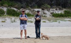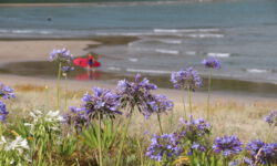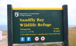 Auf der Halbinsel gibt es eine Bucht, die Sandfly Bay heißt. Aber nicht etwa wegen der Sandflies, sondern wegen des fliegenden Sandes, der da offenbar mehr als woanders herumwirbelt; neuseeländischer Humor! Jedenfalls ist uns fliegender Sand lieber als Fliegen im Sand und stechenderweise an unseren Beinen.