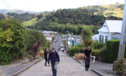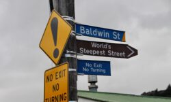 Bevor es weiter nach Norden geht, halten wir an der steilsten Straße der Welt, der Baldwin Street. Sie befindet sich nicht, wie erwartet, in San Francisco, sondern hier. Sie ist 350 Meter lang und im steilsten Abschnitt hat sie eine Steigung von 35 Prozent. Wir lassen das Auto stehen und laufen die Straße rauf. Wir müssen tatsächlich aufpassen, dass wir nicht hinfallen und wieder runterrollen, so steil ist sie. Es gibt tatsächlich Anwohner mit Auto, die hier rauf und runter fahren und froh sind, wenn die Touristen nicht im Weg stehen und sie wieder neu anfahren müssen.