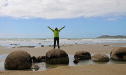 Kurz vor Christchurch halten wir an einem Strand und sehen uns die Moeraki Boulders an. Das sind seltsam kugelig geformte Steine, die durch Erosion von ihren umgebenden Gesteinsschichten freigegeben wurden und nun am Strand liegen. Unsere letzte Nacht im Campervan ist nicht ganz so kalt, aber wir sind ein bisschen traurig, dass nun die schöne Campingzeit vorbei ist. Fahren so weit man möchte, nach Lust und Laune den nächsten oder übernächsten Campingplatz oder einen Parkplatz mit Freedom Camping ansteuern, ist nun vorbei. Zum letzten Mal laden wir die Fahrräder ein…