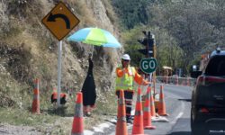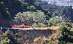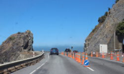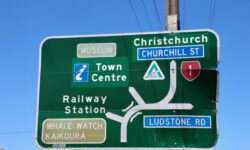 Wir fahren auf dem Weg Richtung Christchurch noch einmal durch den Ort Kaikoura. Nach dem Erdbeben 2016 war Kaikoura für einige Wochen unerreichbar, weil die Zufahrtsstraßen, inbesondere die Küstenstraßen von Norden und von Süden teilweise verschüttet wurden. Die Aufräum- und Reparaturarbeiten dauern immer noch an, aber die Straßen sind wieder passierbar, wenn auch zum Teil nur einspurig. Dann müssen wir anhalten bis die netten Schilderumdreher endlich GO zeigen.