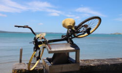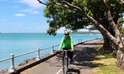 Am nächsten Tag gehen wir erst einmal auf die Suche nach zwei Fahrrädern, damit wir diese für die Tage in Auckland und für die Weiterreise mit dem Campervan unterwegs nutzen können. Wir klappern die Fahrradläden ab und suchen zwei günstige, am besten gebrauchte, Bikes. Am Ende finden zwei blaue, langweilige Beamten- und Rentnerbikes, die aber neu schon so billig sind, dass sich die gebrauchten Möhrchen nicht lohnen. Im Fahrradladen gibt‘s noch zwei Schlösser und notwendigerweise Helme dazu und los geht die erste Fahrt.