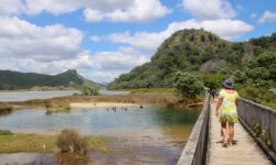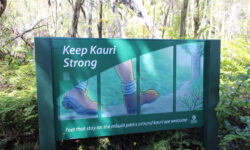 An der Westküste geht es entlang Richtung Süden. In dieser Gegend gibt es viele sehr alte Kauri-Bäume, an denen wir über Trails entlang laufen. Der älteste Kauri ist über 2000 Jahre alt, der größte hat einen Stammumfang von fast 14 Metern. Schon die kleineren beeindrucken mit einer unglaublichen Größe! Leider haben die Kauris mit einer Sporenkrankheit zu kämpfen, so dass man nur noch über Holzstege durch den Wald laufen darf und die Schuhe vor und nach dem Waldbesuch an Waschstationen reinigen muss. Schon bei der Einreise nach Neuseeland wurden wir gefragt, ob wir Wanderschuhe im Gepäck haben und jegliche Einfuhr pflanzlicher Produkte war verboten. Hoffentlich können die Kauris gerettet werden.