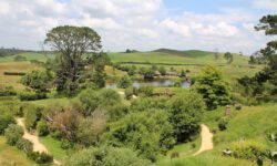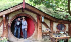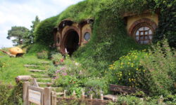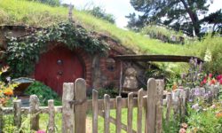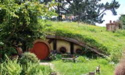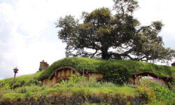 Am nächsten Tag fahren wir in Richtung Auenland. Da sollen die Hobbits in ihren kleinen Häusern wohnen. Mit einem Bus werden wir von Tairua aus nach Hobbiton gefahren. Hier wurden die Filme „Herr der Ringe“ und „Der Hobbit“ gedreht. Das Auenland befindet sich inmitten einer riesigen Farm mit 30.000 Schafen. Frodo, Sam und Co. wurden hier auf dem Filmset zum Leben erweckt. Wir laufen durch Hobbiton vorbei an den vielen liebevoll hergerichteten Häuschen und erfahren einiges über die Eigenarten der Hobbits, aber auch über die Dreharbeiten, die Herstellung der Häuser und darüber, wie die Farm für den Film entdeckt wurde.