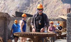Mit den Kopflampen lässt es sich prima durch den Tunnel fahren, das macht richtig Spaß. Erst kurz vor dem Ausgang können wir das Licht am Ende des Tunnels sehen. Der Rückweg führt dann schön bergab, aber nach dem Tunnel wieder über Schotter. Na gut, geht aber und bergab macht es auch Spaß. Wir fahren zurück zur Taverne, wo Jazon L. auf uns wartet.