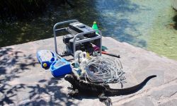 Mit einem weiteren Speedboot geht es rüber nach San Christbal, der östlichsten Insel von Galapagos. Wieder heizen wir zwei Stunden durch den Pazifik. Eine Unterhaltung an Bord ist unmöglich, da die drei je 300 PS starken Motoren so laut sind. Die meisten Passagiere schließen die Augen, dann wird einem zumindest nicht übel. Klaus und ich hören Musik und die Lautstärkeregler sind bis hinten aufgedreht, damit man die Titel erkennt. Wie gelähmt hängen alle irgendwie auf ihrem Platz und hoffen, dass die Zeit schnell vergeht. Das Wasser ist wunderschön türkis, nur der Motorenlärm stört beim Genießen der Fahrt.