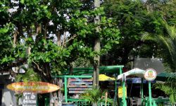 Dann cruisen wir ein bisschen am Strand entlang und essen in der Heritage Kitchen, einer etwas schmierigen Strandfischbude, die schön bunt ist und es irgendwie in die Reiseführer geschafft hat. Der Fisch schmeckt tatsächlich lecker und der Ausblick aufs türkise Meer ist auch sehr schön. Natürlich darf auch ein Besuch im Hard Rock Café nicht fehlen. Hier hängen Stingray-Gitarren an der Wand.
