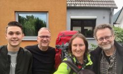 Werner, der die Reise mit uns in Südafrika begann, holt uns vom Flughafen ab. Das freut uns sehr! Er kommt zusammen mit James aus Niagara Falls, der sich schon seit Herbst für ein Auslandsjahr in Dortmund aufhält. Vor fünf Tagen fuhren wir noch mit dem Lincoln Continental seines Vaters durch Niagara Falls. Rixa fährt mit der Bahn nach Münster zurück und wir mit dem Auto nach Dortmund. Vor dem Haus schießen wir ein Ankunftsfoto und dann geht es nach zehneinhalb erlebnisreichen Monaten ins eigene Haus. Ich will erst einmal meinen Ruxsack im Esszimmer abstellen. Plötzlich fängt dort ein Empfangskomitee laut an zu singen. Wir sind platt, damit hatten wir nun wirklich nicht gerechnet.