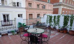 Die Bude ist an manchen Stellen etwas abgerockt und natürlich gibt es, wie immer, ein paar Diskussionen, bis der vorgefundene Zustand hingenommen wird. Ich selbst freue mich einfach hier zu sein und Madrid sehen zu dürfen. Mir ist es wurscht, ob die Klobrille wackelt, das Eisfach im Kühlschrank nicht zugeht, sich die ausgewiesene Klimaanlage nur in einem der Räume befindet und es dadurch brütend heiß in der Bude ist, der Duschvorhang nur geklemmt ist und daher ständig runterfällt, der Wasserhahn permanent laut tropft oder sich die Jalousien nicht herunterziehen lassen. Für mich ist das alles Kleinkram, über den ich mich echt nicht aufregen kann, auch wenn es objektiv natürlich besser sein könnte. Ich finde dafür die große Dachterrasse toll, auf der man abends, wenn es sich etwas abgekühlt hat, gut sitzen kann.