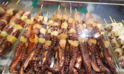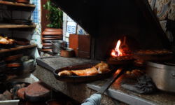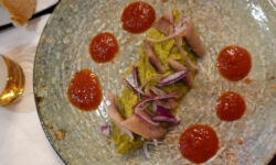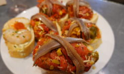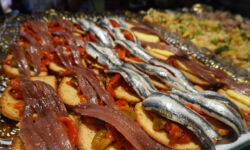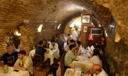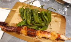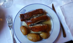 Ich bestelle als einzige Tapastante dieses Schweinchen und bin gespannt wie es aussieht. Auf Bildern im Internet habe ich die Spanferkel in kleinen Pfannen liegen sehen. Ein ganzes Spanferkel wäre natürlich zu viel, aber ich bekomme ein ordentliches Stück davon. Das Fleisch ist gar nicht fettig und es schmeckt wirklich sehr gut. Beim Verlassen des Restaurants kann ich noch einen kurzen Blick in die Küche werfen und sehe dort die Schweinchen in den Pfannen auf ihr Schicksal warten. Der Koch ist schwer beschäftigt und schneidet die Spanferkel zum Verzehr in entsprechend große Stücke.