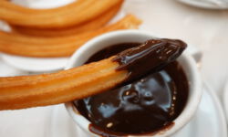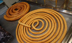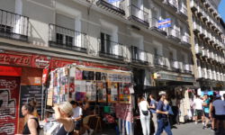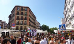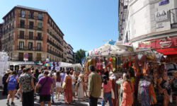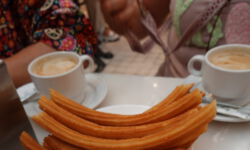 Heute ist leider schon der Rückflugtag. Bis zur Fahrt zum Flughafen haben wir aber noch etwas Zeit, also gehen wir nach dem Frühstück los zum Flohmarkt El Rastro. Es ist der älteste und größte Flohmarkt Madrids mit mehreren hundert Ständen. Er ist riesengroß und erstreckt sich über viele Straßen im Viertel La Latina. Ich komme mir vor, als wäre ich auf dem Camden Market in London, weil es viele neue Sachen zu kaufen gibt. Echter Trödel ist rar, trotzdem halten wir Ausschau nach einem Durchlauferhitzer für unser Apartment. Den finden wir nicht, aber dafür finde ich ein schönes rotes Hemd, das ich mitnehme. Da wir noch etwas Zeit übrig haben, gönnen wir uns noch eine Portion Churros in der Chocolateria San Ginés.