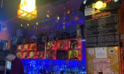 Nach diesem schönen Event geht es nach Hause, jedenfalls fast. Direkt gegenüber unserer Haustür gibt es die schöne, alternative Rockbar Tupperware. Ein buntes Graffiti an der Hauswand weist uns zum Eingang. Drinnen ist es total bunt und an der Bar hängen alte ausgehöhlte Fernsehgeräte aus Plastik, die mit Puppenfiguren bestückt sind und Szenen aus Musik und Film darstellen. Der Barkeeper stammt aus UK, das hört man sofort. Er unterhält sich ein wenig mit uns und verrät uns, dass er FC Valencia Fan ist, weil er lange in Valencia gelebt hat.