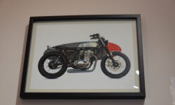 Heute geht es in einen Park, der abgeschieden im südlich Teil der Stadt liegt. Den hatte uns die Frau aus Philadelphia gestern empfohlen. Bevor wir dort ankommen, machen wir eine Pause im Deus Ex Machina-Store. Das ist ein Motorradladen, der Motorräder nach Kundenwünschen zusammenbaut. Also kein Motorrad von der Stange, sondern echte Wunschmobile. Dazu gibt es Deus-Klamotten und oftmals auch ein angegliedertes cooles Café. Das Café in Madrid baut allerdings gar keine Moppeds und hat nur eine Kaffeeecke mit wenigen kleinen Stühlen. Wir entscheiden uns, den Kaffee draußen gegenüber dem Store zu trinken.