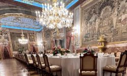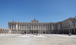 Nach dem Frühstück auf unserer Dachterrasse und dem anschließenden Kauf einer neuen Speicherkarte geht es für uns zum Königspalast, dem Palacio Real de Madrid, der 1735 errichtet wurde. Nach einer halben Stunde Schlangestehen in der Sonne dürfen wir in die königlichen Gemächer. Hier gibt es jede Menge barocken Prunk, beeindruckende Deckengemälde und ein Verbotsschild für Fotofreunde. Wir dürfen nicht in alle der 3418 Räume, aber durch sehr viele dürfen wir durchlaufen und sogar die Königskrone bestaunen.