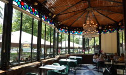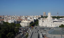 Als näxtes geht es hoch hinaus. Wir fahren mit der U-Bahn und gehen zur Rooftop-Bar Azotea. Vom 7. Stock aus hat man eine gute Sicht auf Madrid. Am Tisch sitzt eine Frau aus Philadelphia, die in den USA Spanischlehrerin ist. Mit ihr unterhalte ich mich ein bisschen und sie empfiehlt uns in den Park El Retiro zu gehen. Wir ziehen weiter und sehen uns den Bahnhof Atocha an, der sehr schön sein soll, aber leider gerade umgebaut wird. Daher ist die schöne große Halle mit den großen Grünpflanzen nicht sehr beeindruckend. Da muss ich also bei einem näxten Madridbesuch noch einmal hingehen.