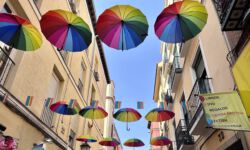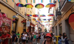 Gestern fiel uns schon auf, dass die ganze Stadt ziemlich bunt ist und viele Regenbogenfahnen an Häusern hängen und Regenbogenflaggen oder -fächer in den Touriläden zu finden sind. Außerdem gibt es viele Männerpärchen, die Hand in Hand durch die Straßen schlendern. Nach einer kurzen Recherche wissen wir auch, warum. Es ist LGTBIQA+ Pride Festival mit diversen Veranstaltungen im Laufe der Woche und einer staatlichen LGTBI-Pride-Demonstration am Samstag, die sich für Toleranz und Gleichstellung von Lesben und Schwulen und Queeren usw. stark macht.