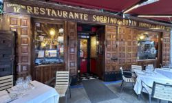 Anschließend lassen wir uns treiben und schlendern durch die Gassen und Straßen in der Nähe des Plaza Majors. Für das Abendessen haben wir schon von zu Hause aus einen Tisch im (laut Guinnesbuch der Rekorde) ältesten Restaurant der Welt reserviert. Das Botin liegt in der Calle Cuchilleros, in der früher offenbar die Messerschmiede ansässig waren. Es sieht von außen sehr klein aus. Drinnen geht es aber über mehrere Etagen nach oben und es hat auch einen uriges Kellergewölbe. Die Spezialität auf der Speisekarte sind geröstete Spanferkel, die in einem speziellen Ofen zubereitet werden.