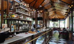 Vorher suchen wir erst einmal das Hard Rock Café, das ich immer besuche, sofern es das in einer Stadt gibt. Leider hat das Hard Rock Café an der ursprünglichen Stelle schon seit über zwei Jahren geschlossen und es gibt nur noch einen Hard Rock Shop in der City. Naja, das ist schade, aber nicht dramatisch. Dafür sitzt es sich gut im Café El Pabellon del Espejo am Paseo de Recoletos unter Bäumen. Das Café hat einen Art-Deco Glaspavillion und darin sehr schöne Bar.